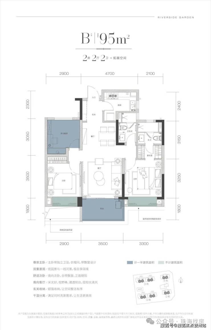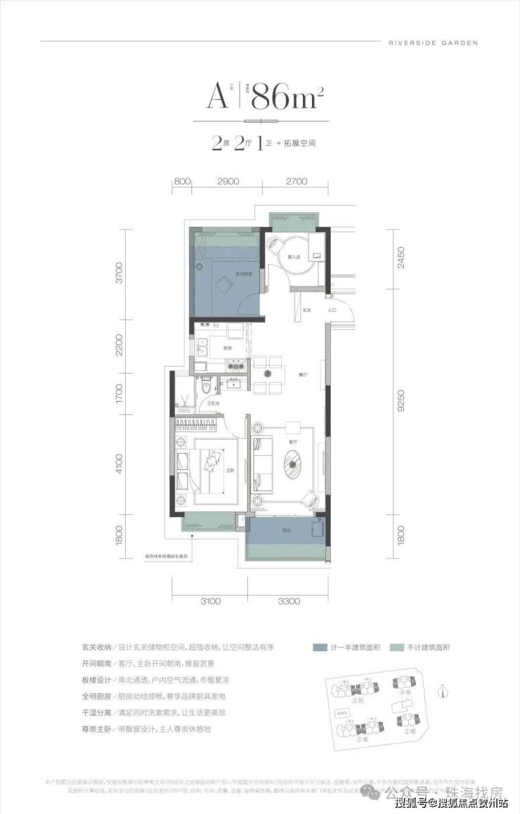 1梯2户纯板式:片区少有板式楼栋设计,南北对流、景观、视野、私密性强