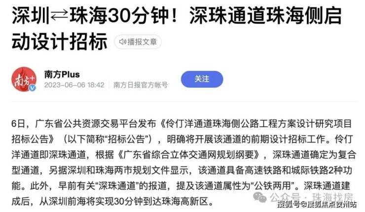 值得关注的是,招标公示明确规划:深珠通道珠海侧将设置淇澳、北围、下栅、港湾大道唐家四大立交互通节点,且全部坐落于珠海高新区境内!这意味着珠海高新区将成为深珠通道直接辐射的核心受益区,未来从区域出发直达深圳前海仅需 30 分钟,将率先承接深圳前海的产业、资源与政策辐射红利,区域价值迎来质的飞跃。