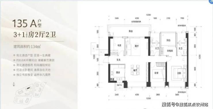 135㎡为B户型横厅格局