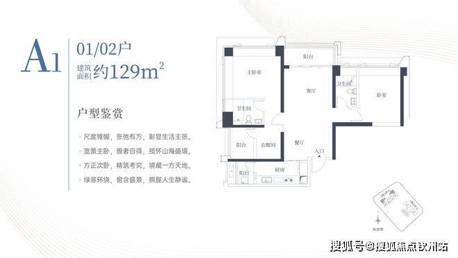 1栋一单元A1、A2户型:面积约为129㎡