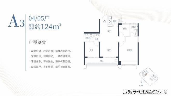 1栋一单元A3户型:面积约为124㎡