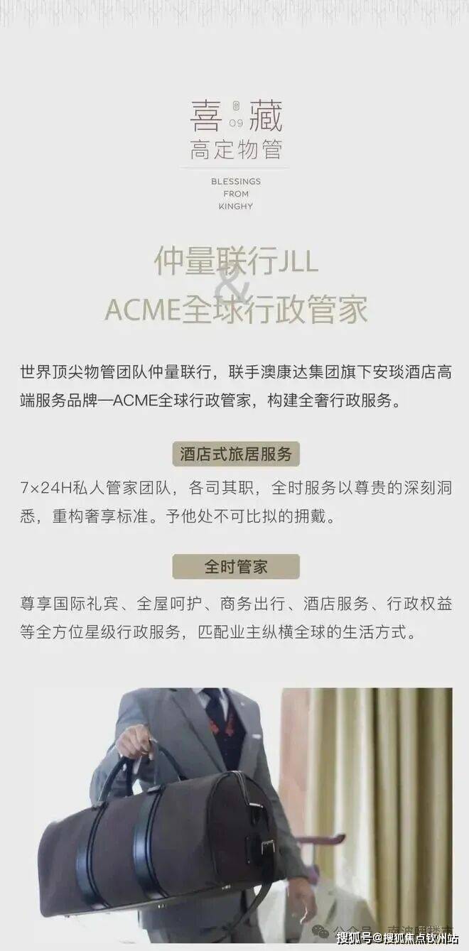 深谙时代掌舵者全球旅居生活的习惯与视野,璟喜采用澳康达集团旗下安琰AYEARN酒店高端服务品牌—ACME全球行政管家,以定制化酒店式旅居服务为内核,为塔尖圈层构建全奢行政服务。