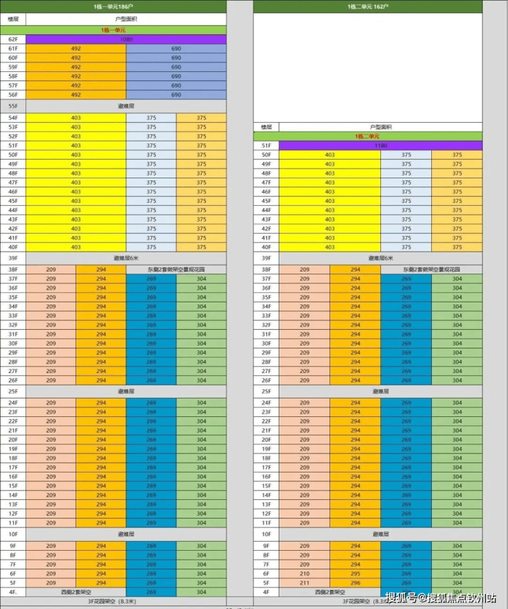 ①低中区5F起(150米以内)是约209-304㎡四房以上大户型;