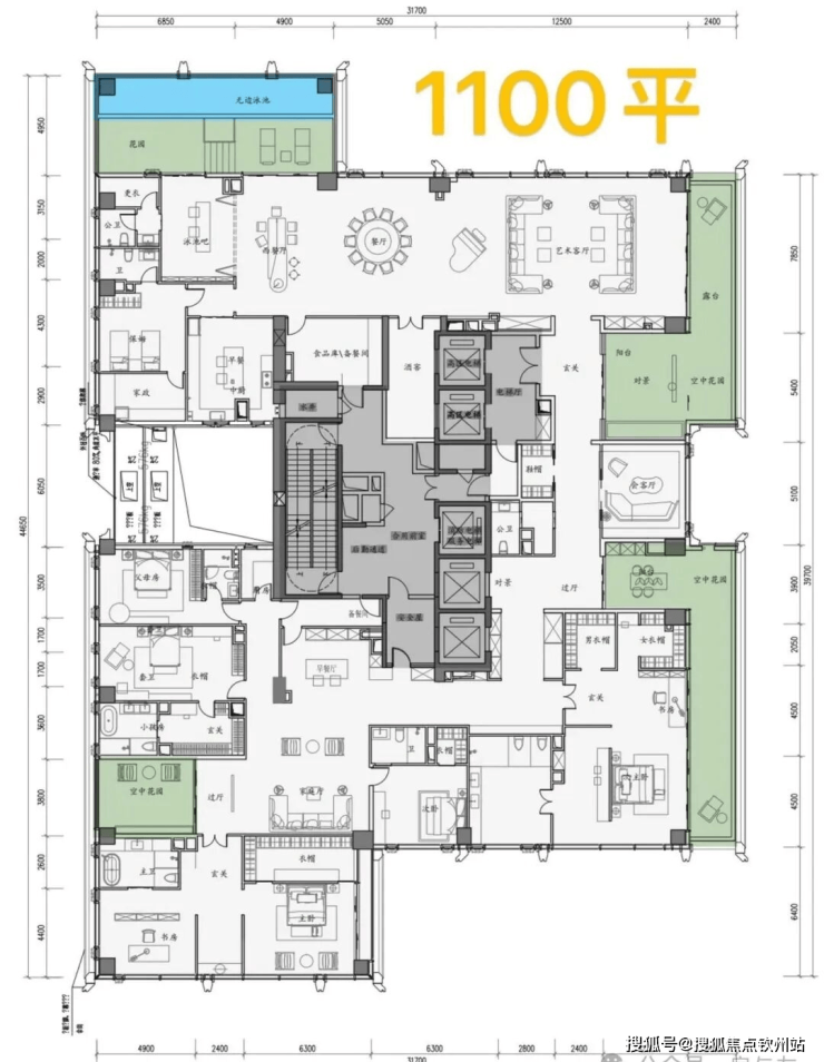 ④顶楼整层不是复式,约1100㎡顶奢大平层仅两套