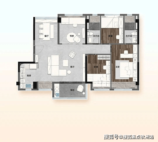 100-101㎡四房两厅两卫:百平享四房,空间利用率高,总价约 280-310 万。