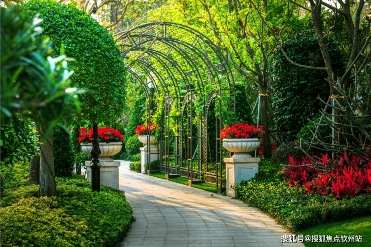 园林规划:定制新法式园林,整体作为“露天客厅”来打造,名贵树种全冠移植,优美花卉层次鲜明,兼具法国的理性与浪漫