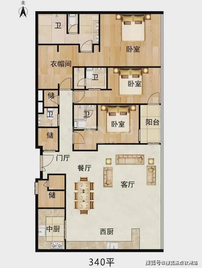 3、户型选择:主力户型为340㎡、480㎡、620㎡三种,配备2梯1户专梯入户、270°海景视野及智能家居系统。