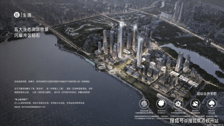 深超总作为城市核心地一线亲海区,集合了海(深圳湾)、湖(华侨城人工湖)、湿地(红树林国家湿地、华侨城国家湿地公园)、公园(深圳湾公园等)、高尔夫(沙河高尔夫球会)多重自然资源。