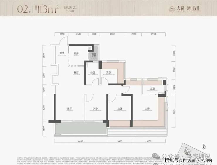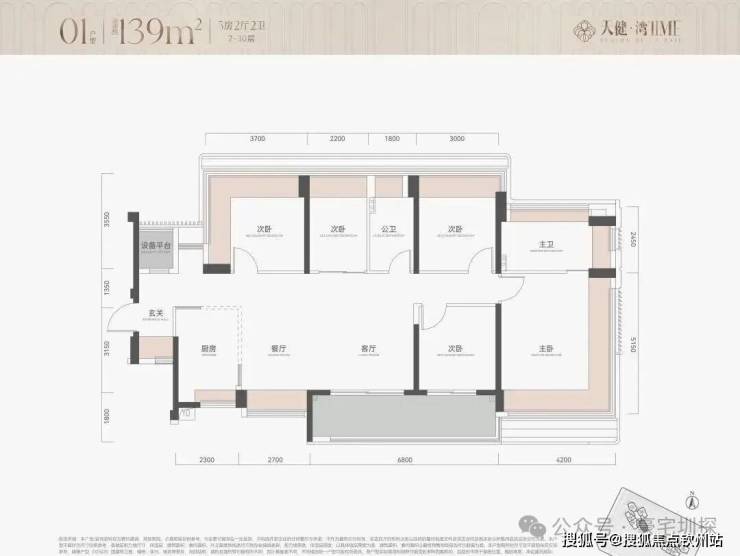户型为113㎡四房114四房和139㎡五房约290套,2栋100米内30层住宅,2梯5户,其中主力为113㎡四房,整体以朝南及西南为主,有两套朝东北面向金众。