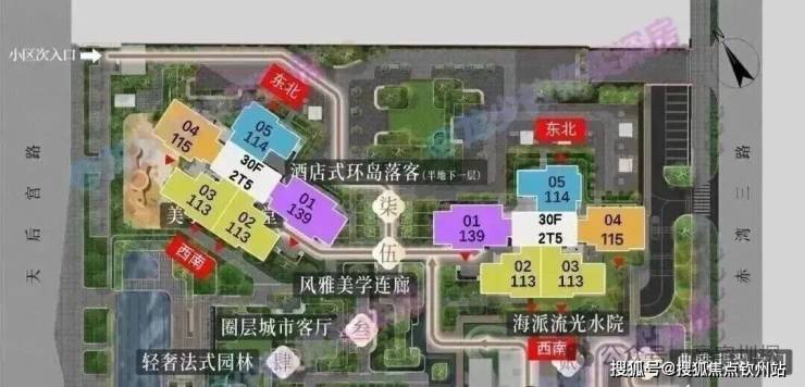 整体以朝南及西南为主,有两套114㎡朝东北面向金众。