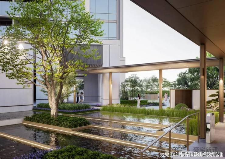 石材景墙+艺术水景+小叶紫檀组景,豪宅级归家体验。