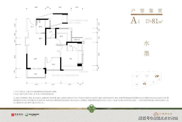 81㎡的3房2厅2卫,设计的是经典竖厅格局,进门入户玄关,客厅3.4米开间,动静分区,三开间朝南,3个卧室分别做到了主卧14.03㎡/次卧8.42㎡/6.74㎡(实测面积,去掉墙体),主卧+1个次卧270°飘窗,U型厨房,卫生间三段式分离,得房率约100.8%(包含赠送),西南朝向。