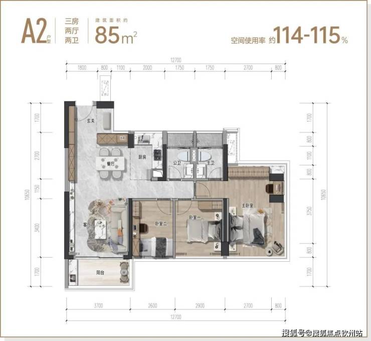 产品面积段:建面约85㎡-175㎡高得房率奢阔三至五房 新规好宅