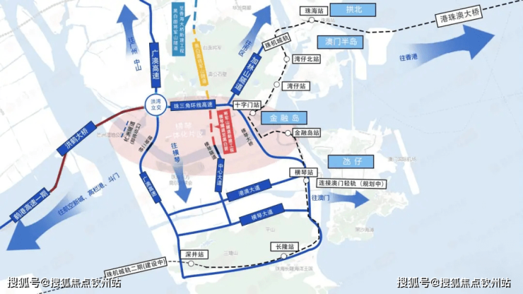 中后期伴随着广珠城规延长线金融岛站通车后,大概一个半小时内就可以抵达广州珠江新城,该线路末来将与澳门轻轨于横琴口岸连接。待到珠机城规(基本建设中)、联澳隧道(整体规划中)、琴澳轻轨(基本建设中),等中后期金融岛路轨全方面基本建设完成后,从珠海横琴湾項目启程到珠三角临近的城市将更为方便快捷。