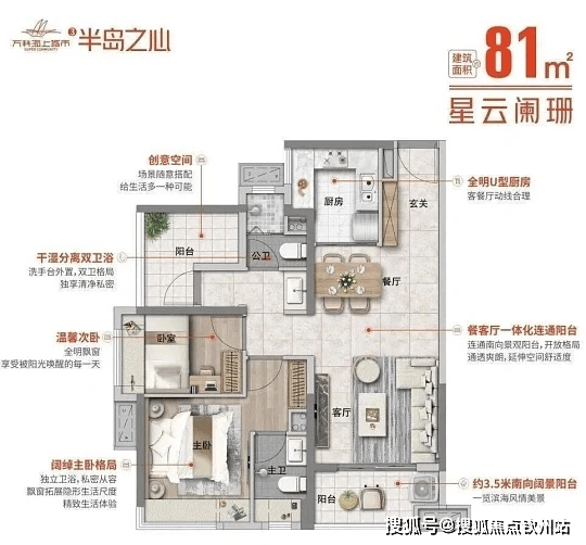80-90㎡三房两厅两卫(高层):南北通透,部分海景,总价约 152-198 万。