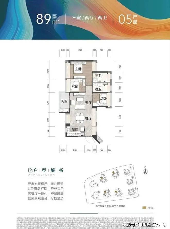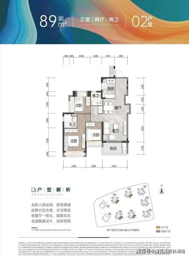 (2)89-92㎡三房两卫:分竖厅和横厅,全凸窗设计,竖厅可观会展河景;