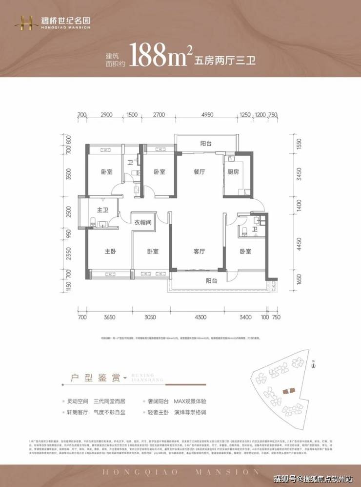 188㎡的5房2厅3卫,折后总价874-923万/套,单价4.64-4.91万/㎡。