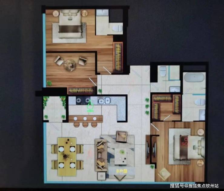户型亮点:双龙抱珠,厅出阳台;两卧室和客厅相同景观,都可享受一线海景、18万演绎公园景观;