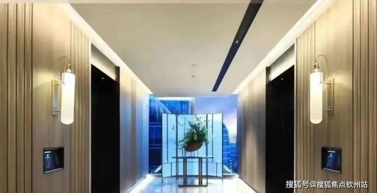 偏核心筒设计约70%使用率电梯厅自然采光 舒适候梯