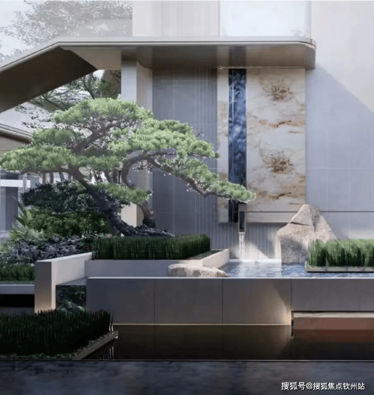 项目外观源自帆船扬帆,象征迎风启航、迈向理想,风帆元素在风和日丽时尽显建筑的优雅宁静,与周边建筑形成鲜明对比,独具识别性。步入小区,“山海无界,东方隐奢”的理念扑面而来,于繁华市区勾勒出无界山海风光。