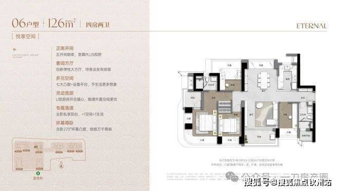 其中,项目最小面积92㎡产品,做到了双龙抱珠的户型设计,充分将户型内部空间进行展开,优化动静分区的同时,还实现了270°的小面积奢阔主卧景观。
