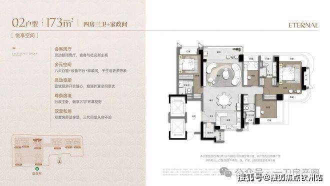 最大面积产品173㎡产品作为压轴藏品,户型整体正对深圳中轴,总览中轴灯光秀+各类深圳主活动会场。最高5房3卫双套房配置,让居住舒适体验更升一级。主卧做到270°环幕景观,超绝视野面。同时本户型还做到相对1梯1户的梯户配比,超绝奢宅体验。