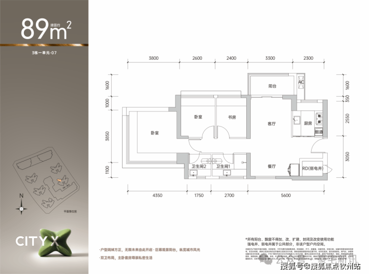 01户型89平米 折扣后316-322万 南北通透