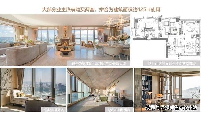 总价约920—3700万,其中185㎡户型总价约920—1500万,245㎡户型约总价1200-1900万。超40%业主热衷购买两套,拼合为建筑面积约425㎡使用。