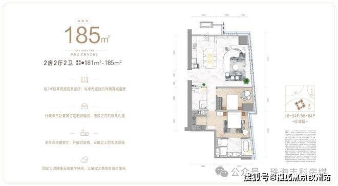 IFC琴澳湾1号位于“IFC横琴国际金融中心”46-68层,是横琴金融岛内70年产权住宅产品,目前在售建面约185-425㎡大平层住宅,单价4.9万元/㎡起