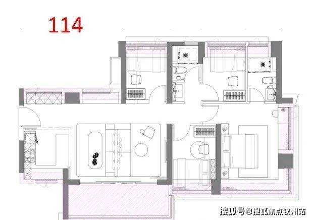 114平(4房2厅2卫)户型特点:真南北通透,空气对流,景观和视野一流,改善型、刚需四房 必看户型。