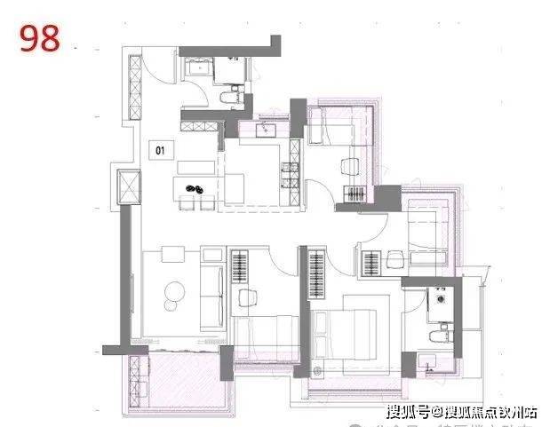 98平(4房2厅2卫)户型特点:板块内目前唯一这个面积段做四房的产品,百变户型(可做豪宅两房、三房改善、四房刚需)空间刺客。