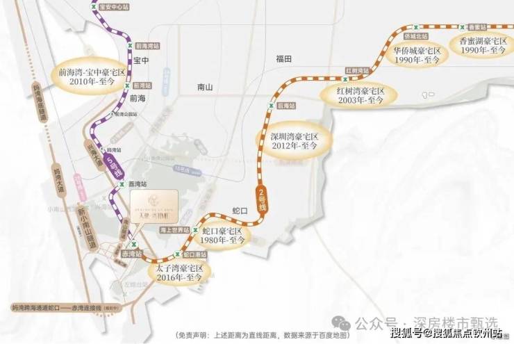 项目距2号线(豪宅线)与5号线(发展线)首发赤湾站约300m(直线距离),从此,坐地铁而不是站地铁,未来新小南山隧道(预计2027年竣工)、望海路升级等重大交通配套持续落地,咫尺间连通蛇口、前海。