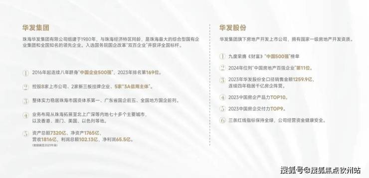 华发集团:组建于1980年,与珠海经济特区同龄,是珠海最大的综合型国有企业集团和全国知名的领先企业。入选国务院国企改革“双百企业”并获评全国标杆,2023年中国企业500强169位。(数据截至2023年底)