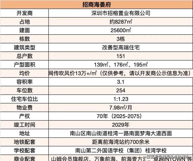4、品牌与设计:开发商是招商蛇口,在深圳打造过多个高端项目(如招商玺家园),有口碑。项目预计采用现代公建化玻璃幕墙,设计团队经验丰富。物业服务预计也是其旗下高端物业,水平有保障。