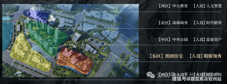 东区为住宅组团,有滨水园林,近地铁和商业,有精英要的奢享及高效;