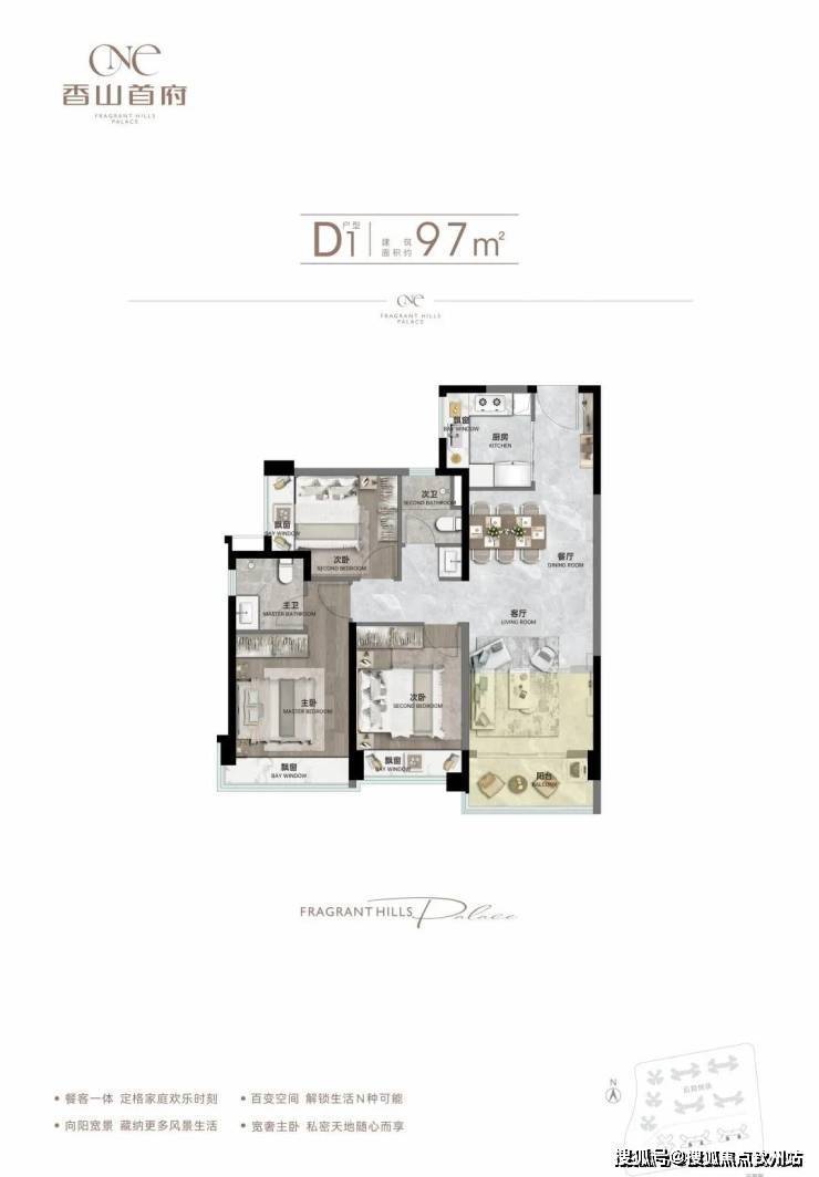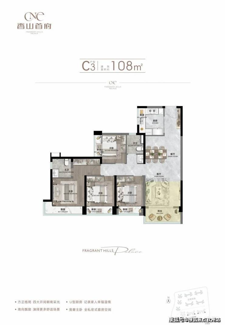 亮点:三开间朝南主卧,270°飘窗设计,最大化赠送