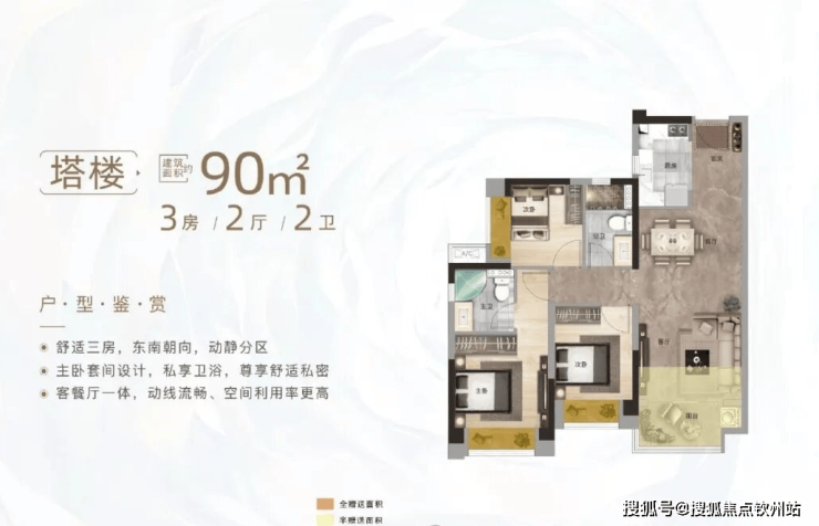 塔楼 约90㎡3房2厅2卫 |