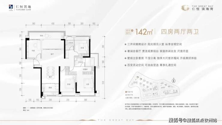 115方和142方南北通透四房,不过这个南北通是阳台和厨房窗户南北通,开窗通风可能会有油烟进入客厅。想要景观房的有115方二线湖景和142方一线临湖景观,与深圳前海、香港大屿山隔海相望。142的户型还带7.4米的大阳台,这景观面配上这大阳台,确实不赖。