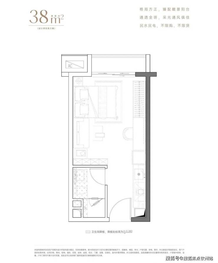 38平单房,麻雀虽小但五脏俱全,带阳台通燃气,卫浴干湿分离,可改造为小两房。