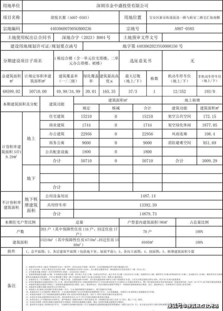2024年1月,深圳市宝安区城市更新和土地整备局公布新安街道珺悦名都(A007-0585、A007-0586)两地块《建设工程规划许可证》及总平面图的通告。