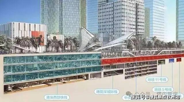 地下4层是两条城际轨道线:港深西部快轨和“穗莞深”城际轨道线。