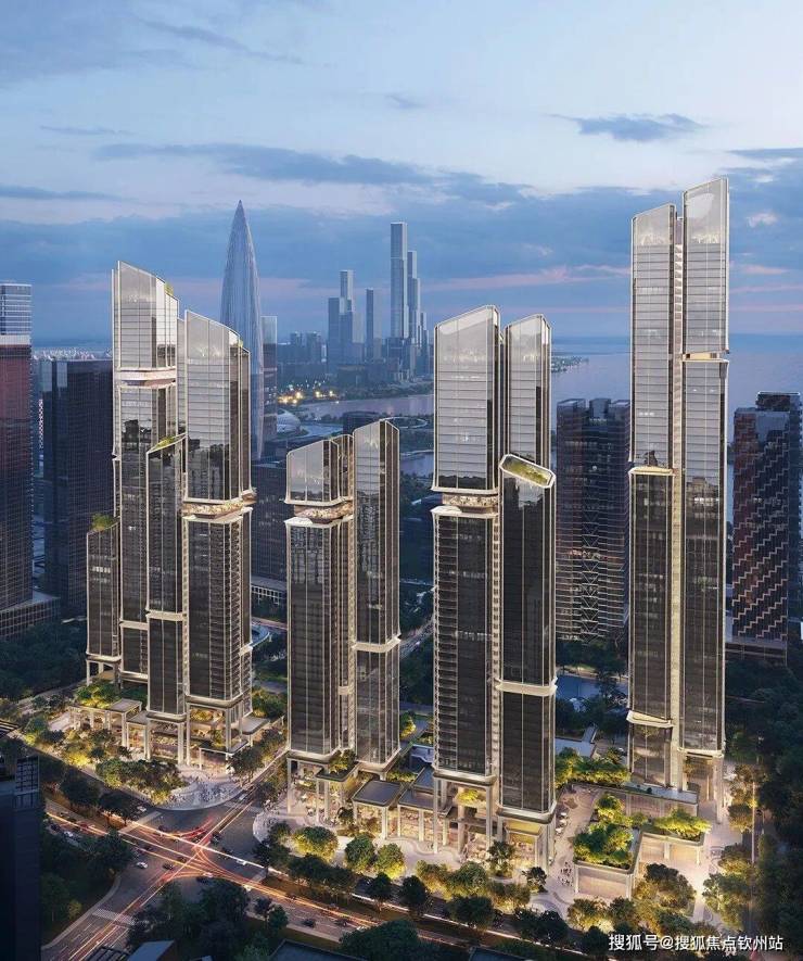 建筑规划:5栋超高层塔楼(4栋住宅+1栋公寓),高度分别为150米、200米、200米、240米(住宅)及250米(公寓)