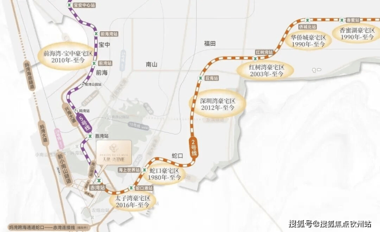 项目紧邻地铁2号线和5号线赤湾站,步行约500米可达。未来还将接入规划中的12号线延长线和28号线,形成“三线交汇”的交通枢纽。未来新小南山隧道(预计2027年竣工)、望海路升级等重大交通配套持续落地,咫尺间连通蛇口、前海。