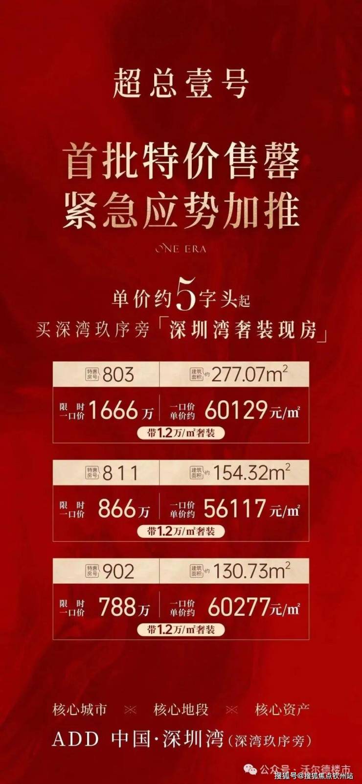 性价比:单价5.2万/㎡起(带装修),低于周边住宅(如中海深湾玖序15万+/㎡)。
