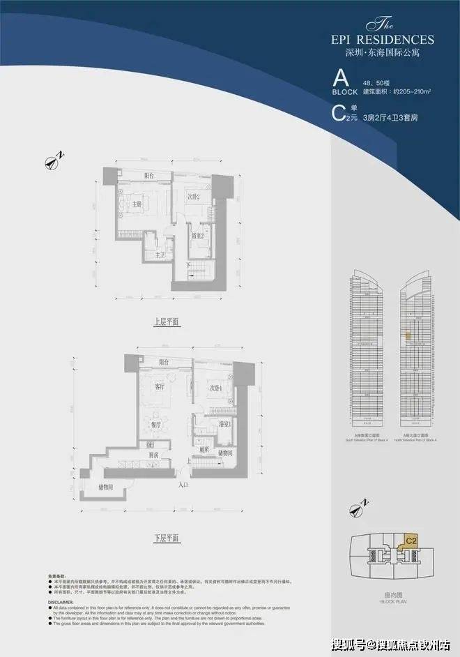 A座48层C2单位,建面约210㎡,3房2厅4卫3套房
