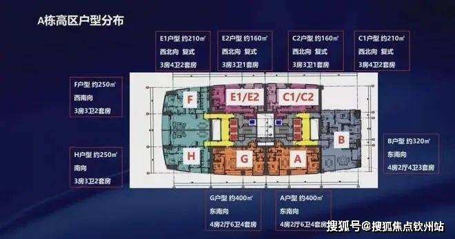 户型鉴赏:东海国际公寓建面约19万㎡,A、B两栋,户型涵盖75m²一房至800m²顶复,主力户型为140-500m²,户型面积跨度很大大,有30多个户型。