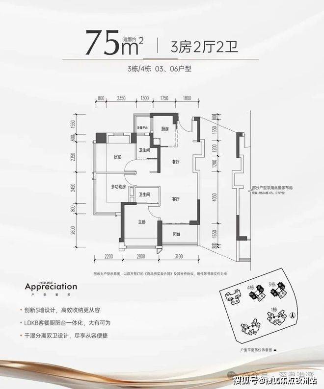 一共8条腿,选择比较丰富。70-80平户型在市面上有楼盘在售,但基本为3房1卫或2房1卫,溪山禾玺基于新规设计优势,75平直接升级为3房2卫,具备功能全的同时还压低了总价。