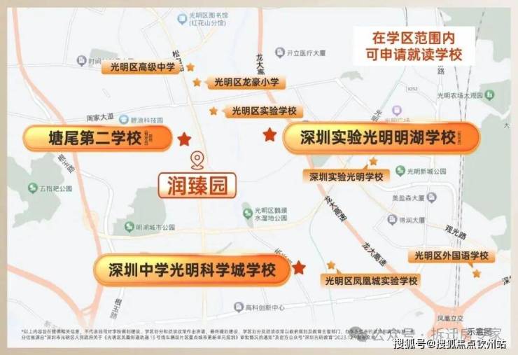 深圳中学光明分校、深圳实验光明分校、塘尾幼儿园、博华学校、光明区实验学校、光明区外国语学校
