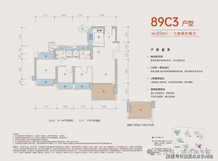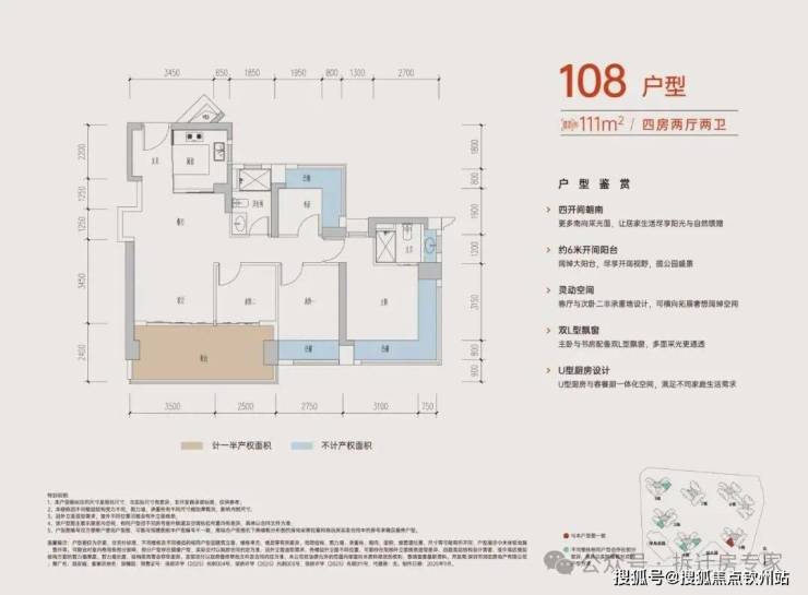 竖厅设计动静分区,约3.5米开间主卧,带独立卫生间,书房L型飘窗,多面采光更通透,U型厨房布局,流线顺畅。