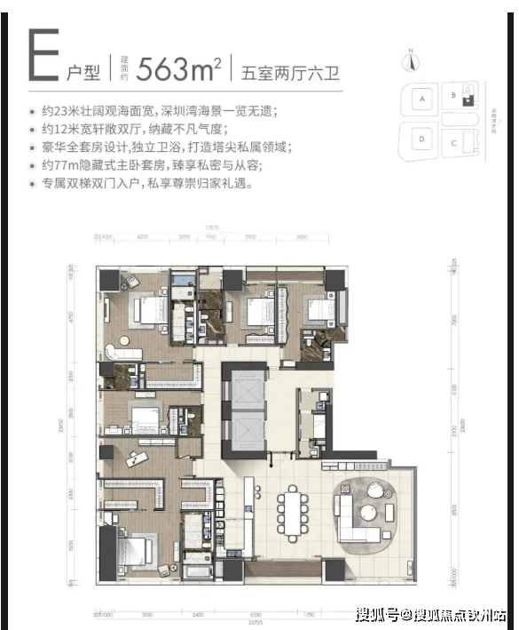 (4)580㎡(顶楼),总价约5亿;